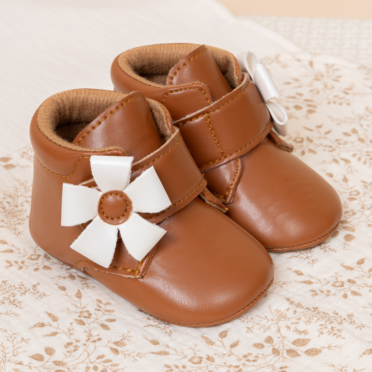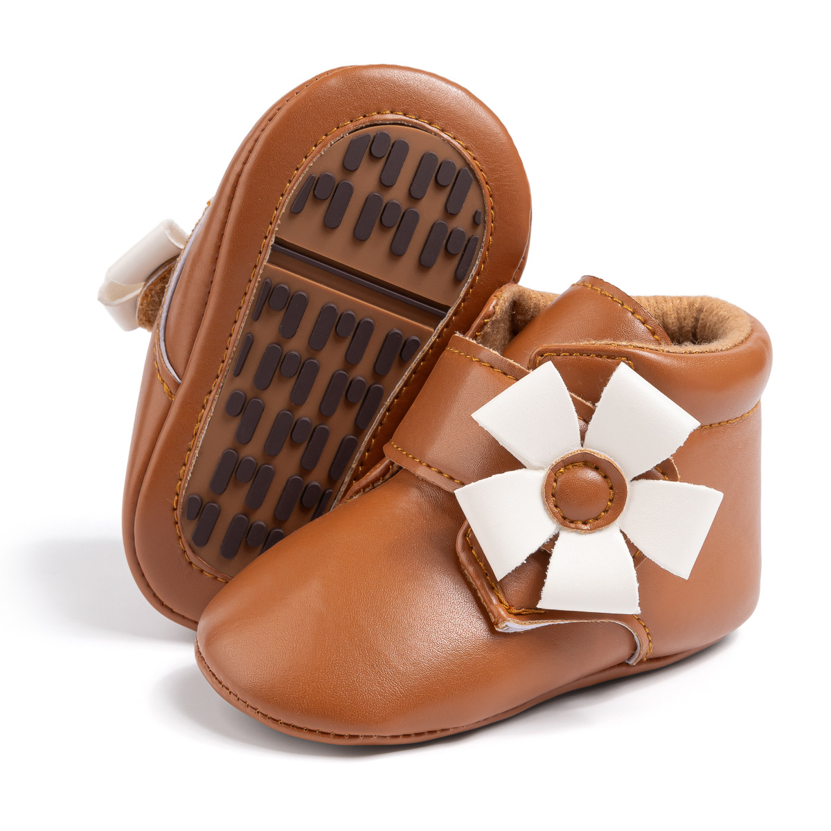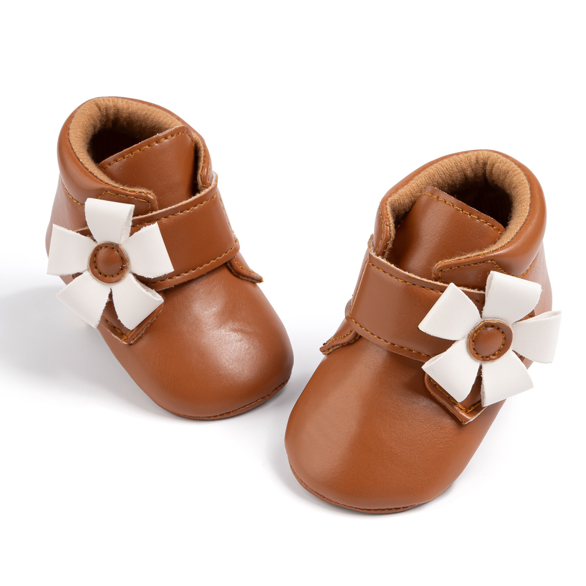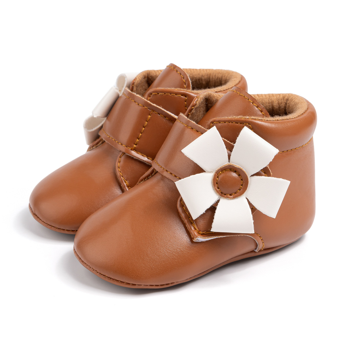 2025 Cross-Border Autumn And Winter New Baby Shoes Warm Leather Boots Flower Velcro Non-Slip Baby Shoes