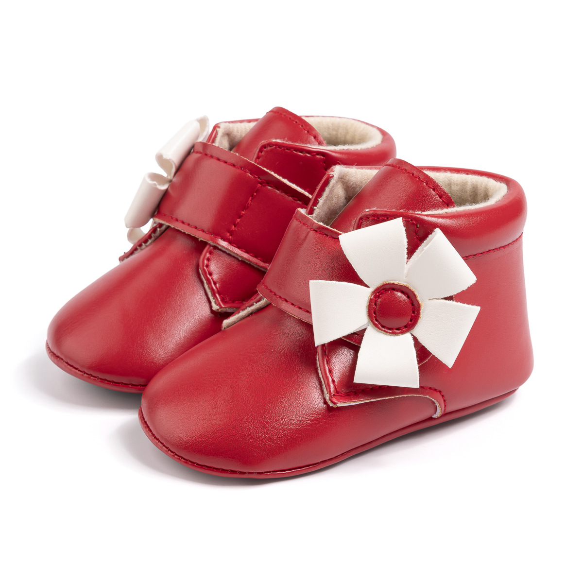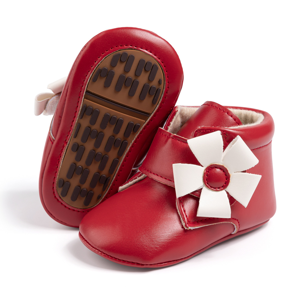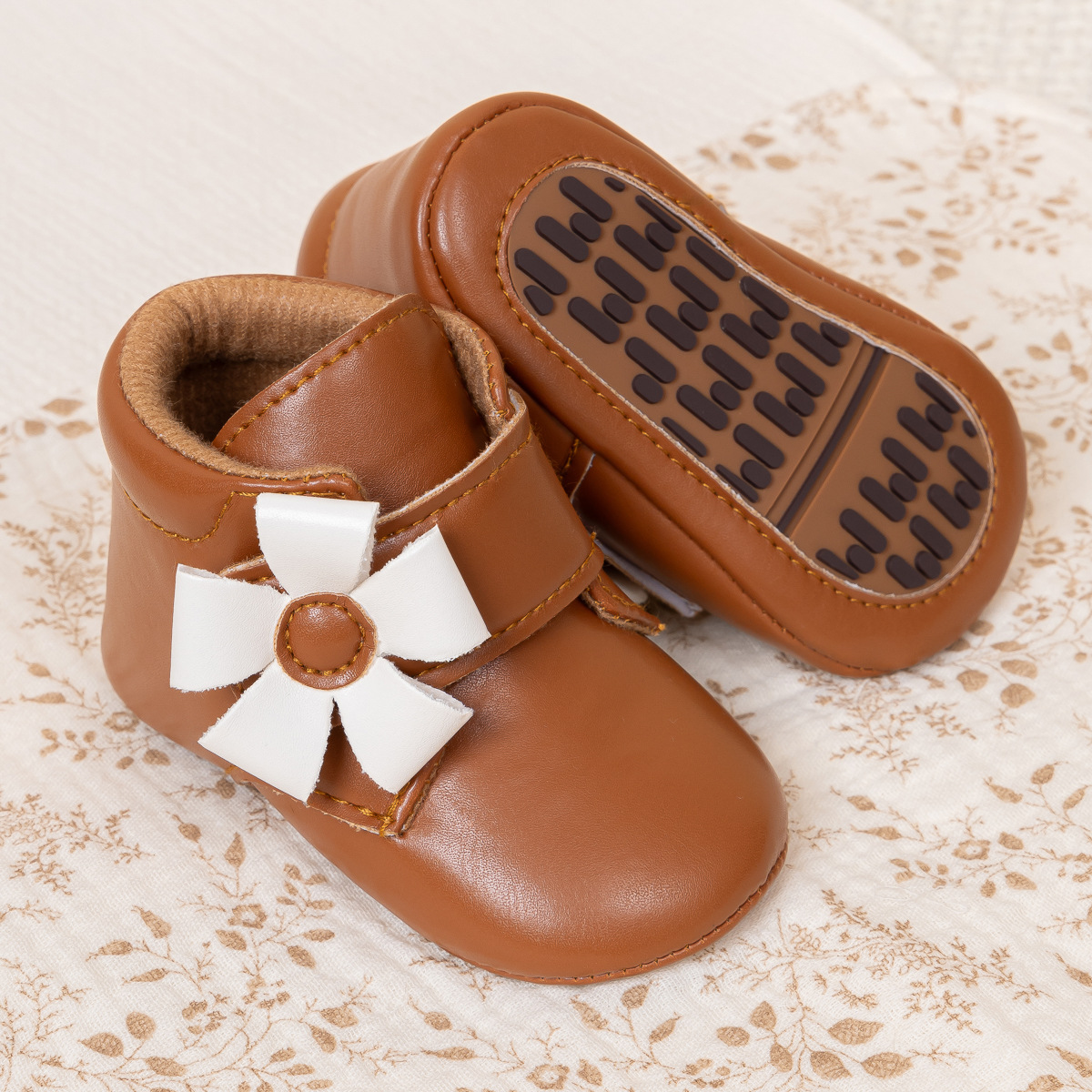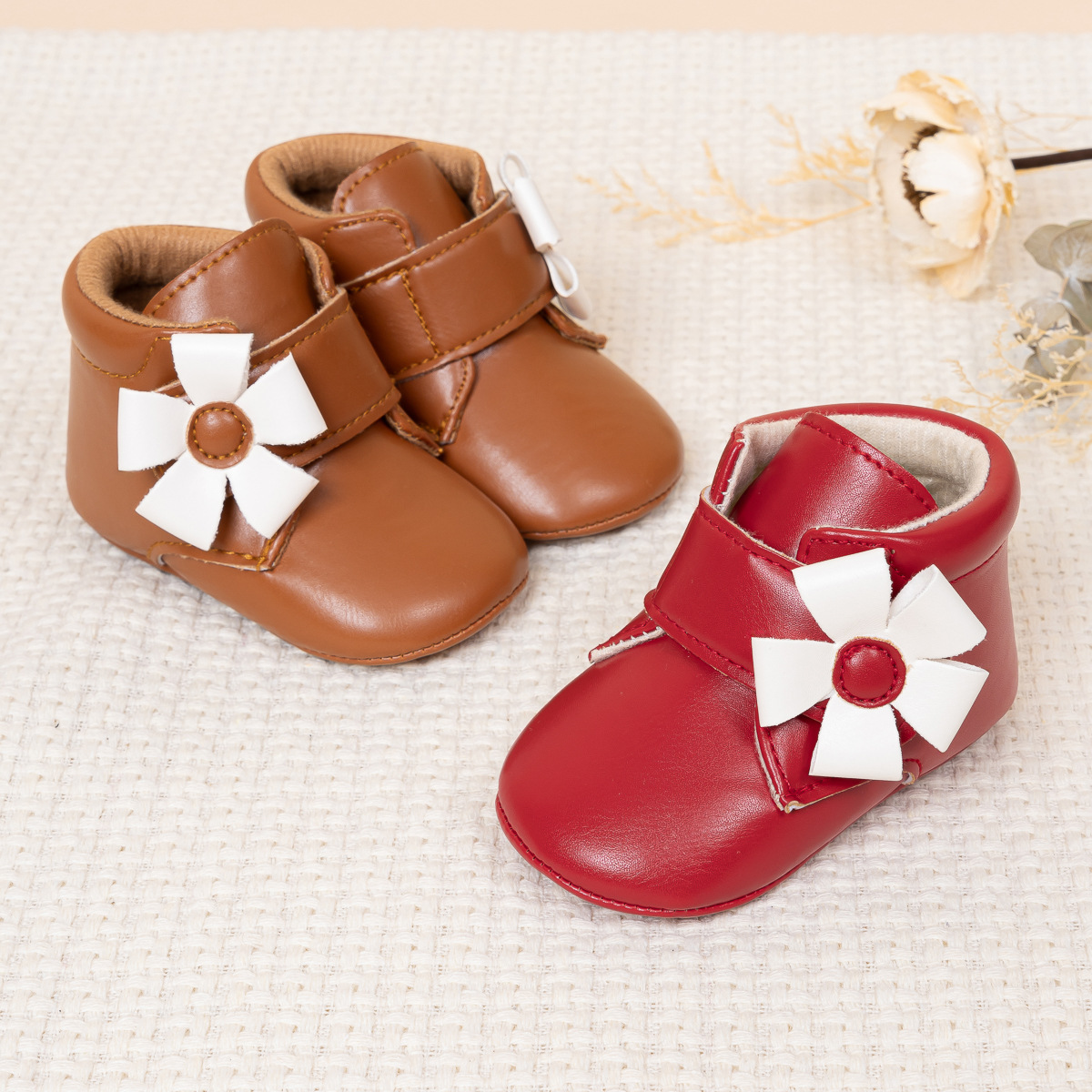 2025 Cross-Border Autumn And Winter New Baby Shoes Warm Leather Boots Flower Velcro Non-Slip Baby Shoes