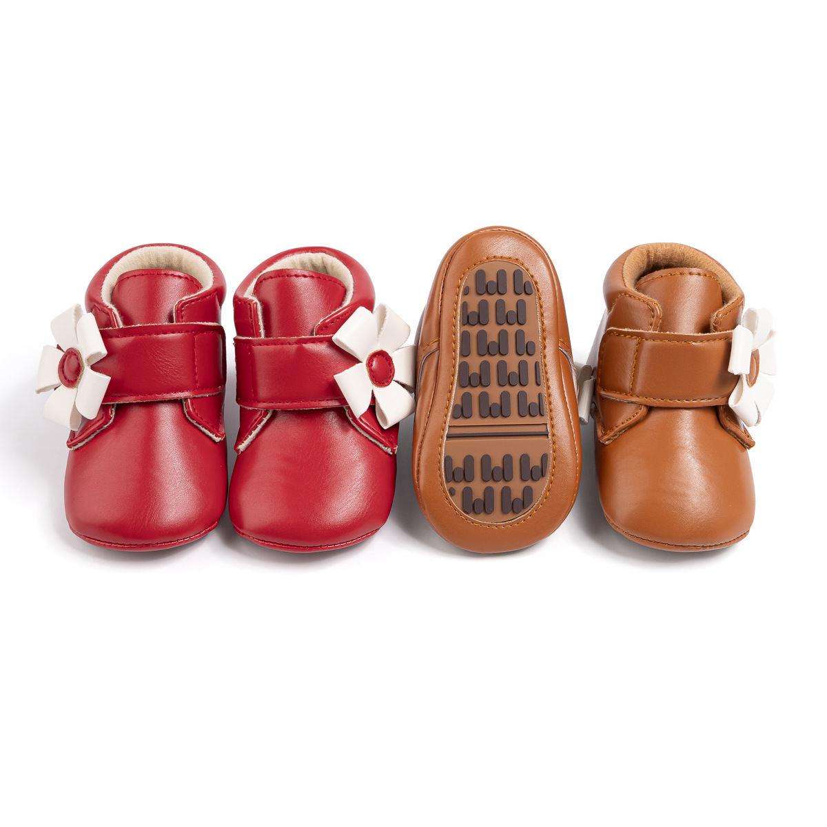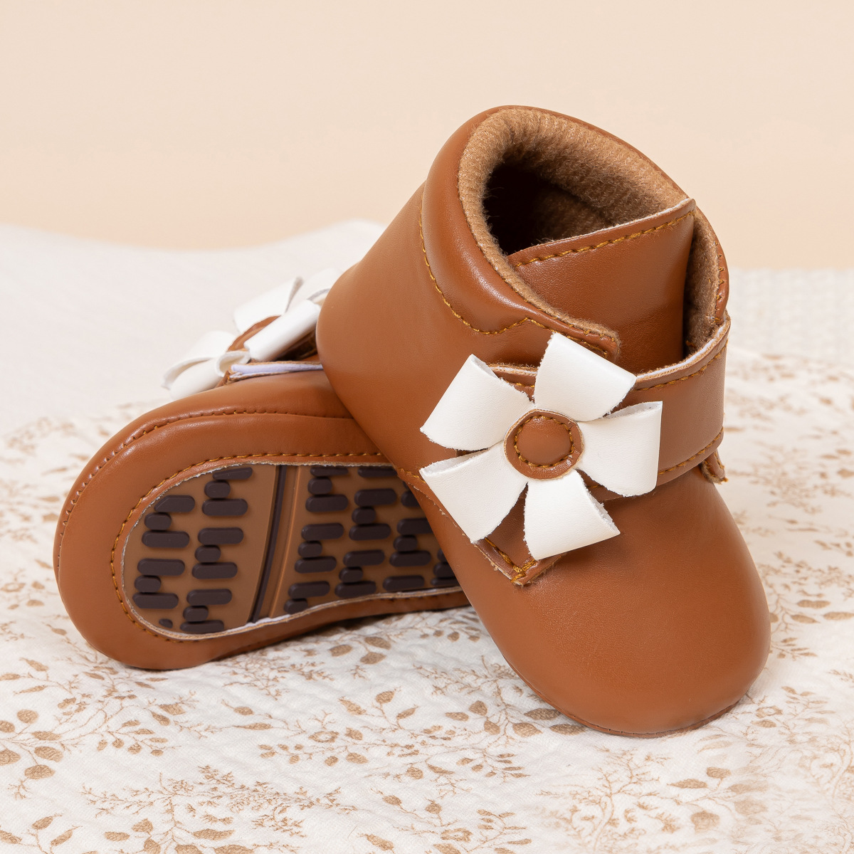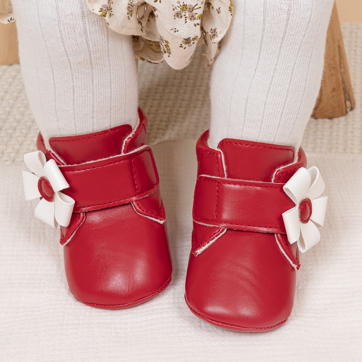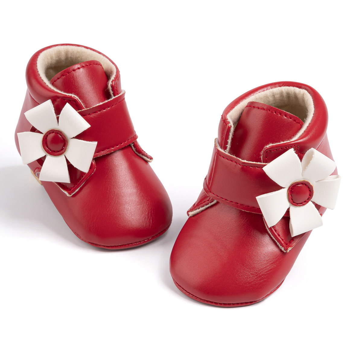 2025 Cross-Border Autumn And Winter New Baby Shoes Warm Leather Boots Flower Velcro Non-Slip Baby Shoes