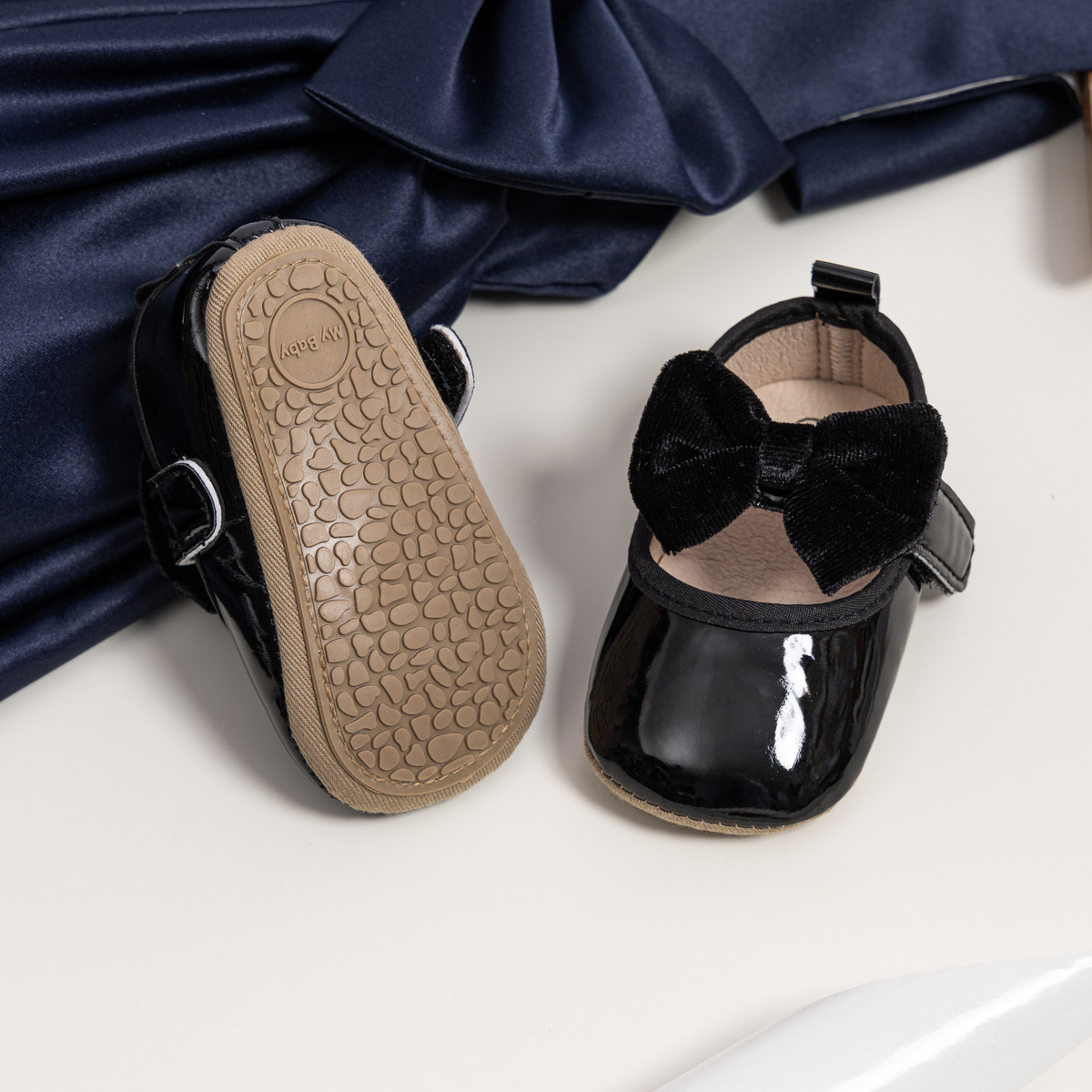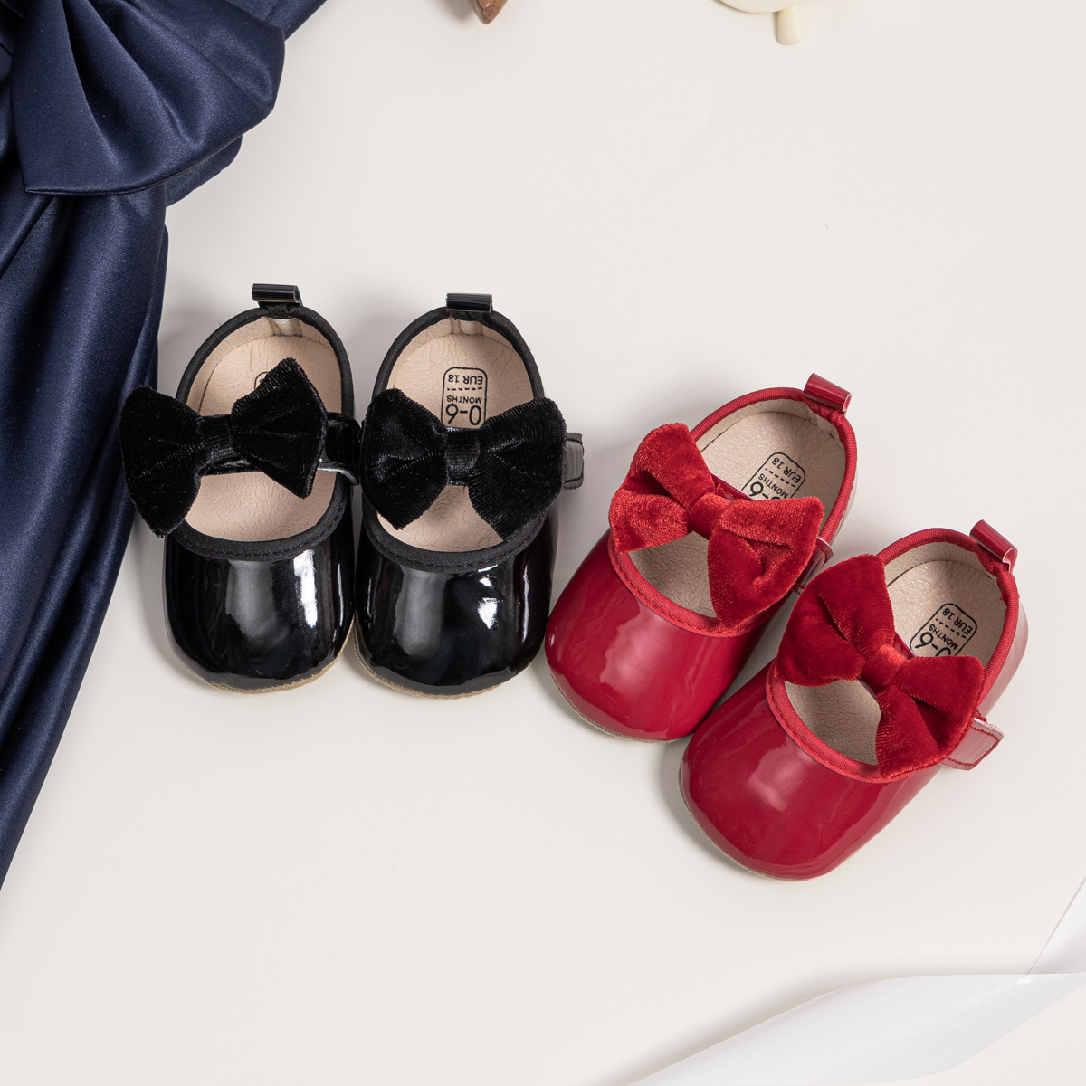 2025 New Baby Shoes Velvet Bow Velcro Princess Shoes Soft Rubber Soled Baby Shoe For Girls