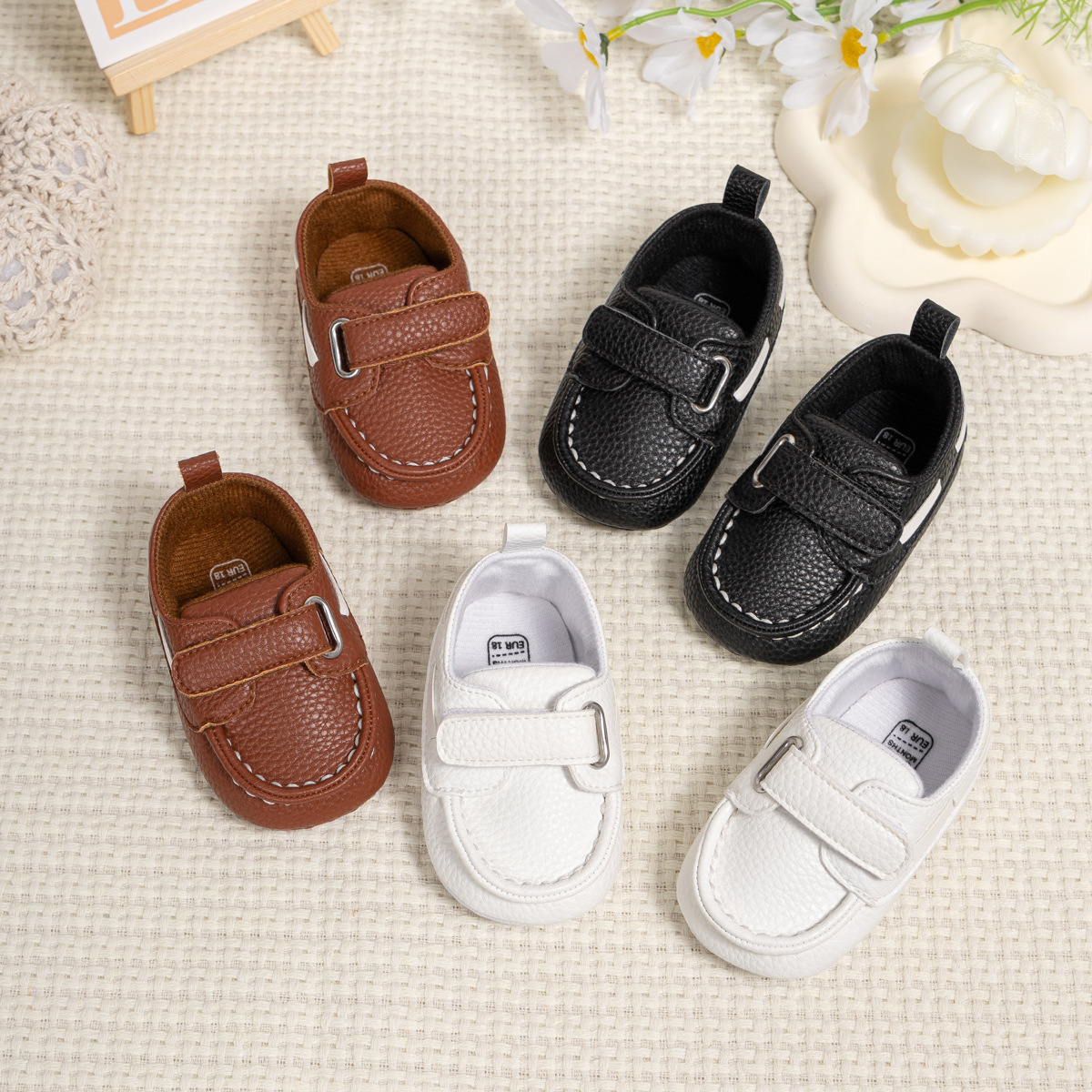 Cross-Border 0-1 Year Old Baby Shoes Breathable Cloth Soles Velcro Toddler Shoes Peas Shoes Non-Slip Baby Shoes Babyshoes