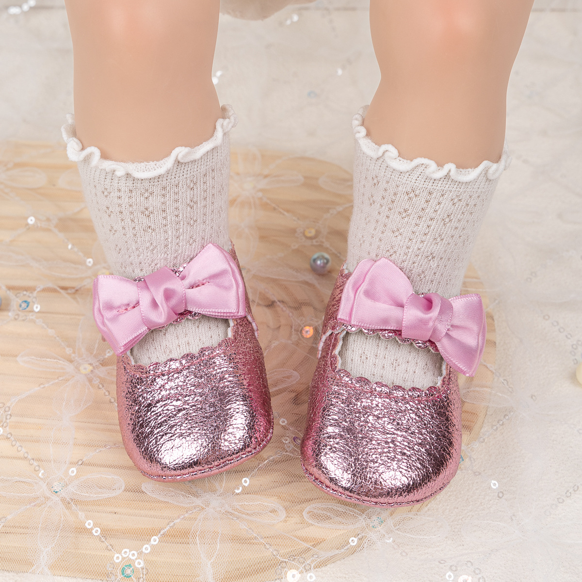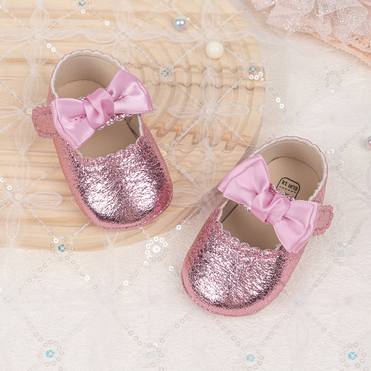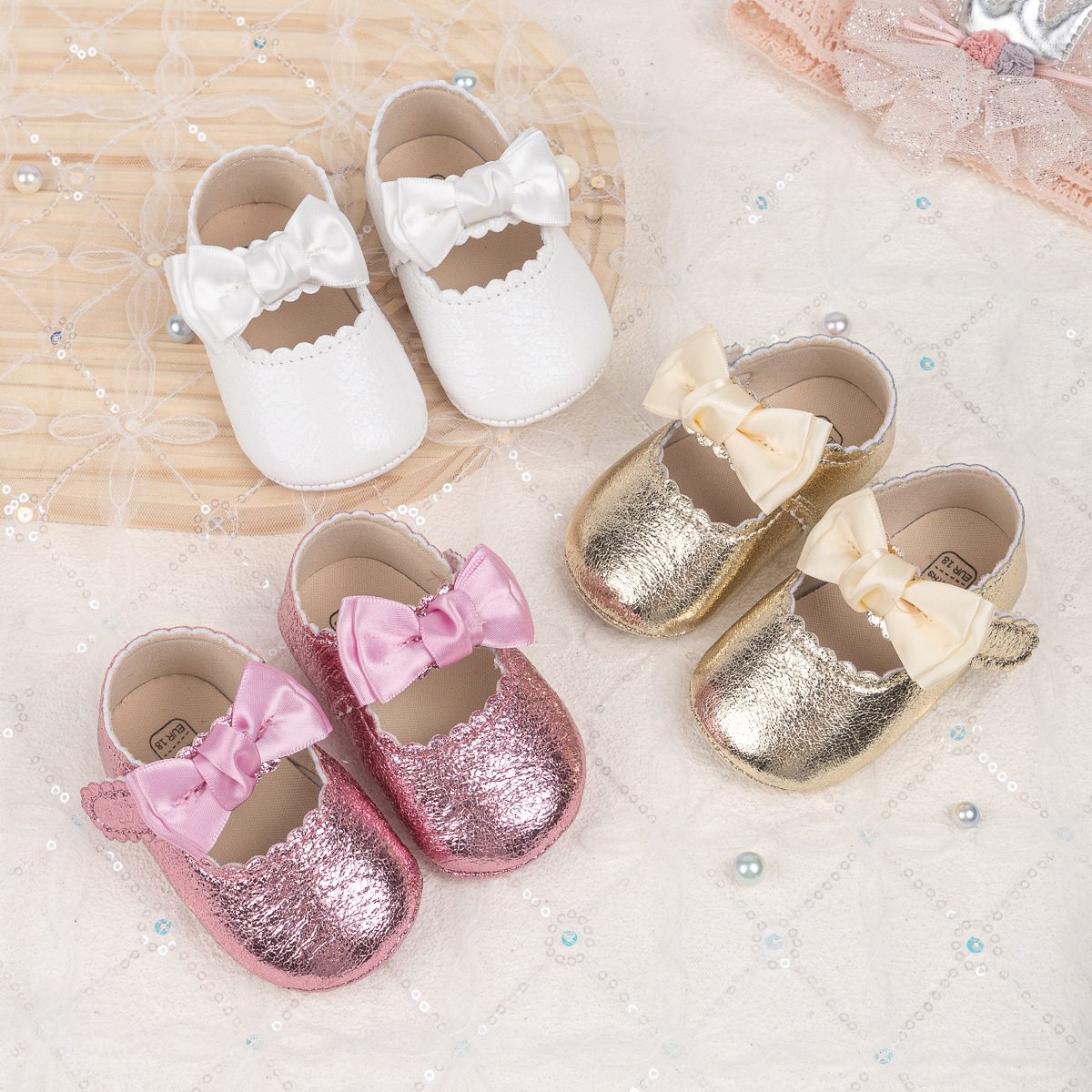 Foreign Trade Spring And Autumn New Baby Shoes Princess Shoes Bow Velcro Non-Slip Rubber Sole Toddler Shoes Baby Shoes