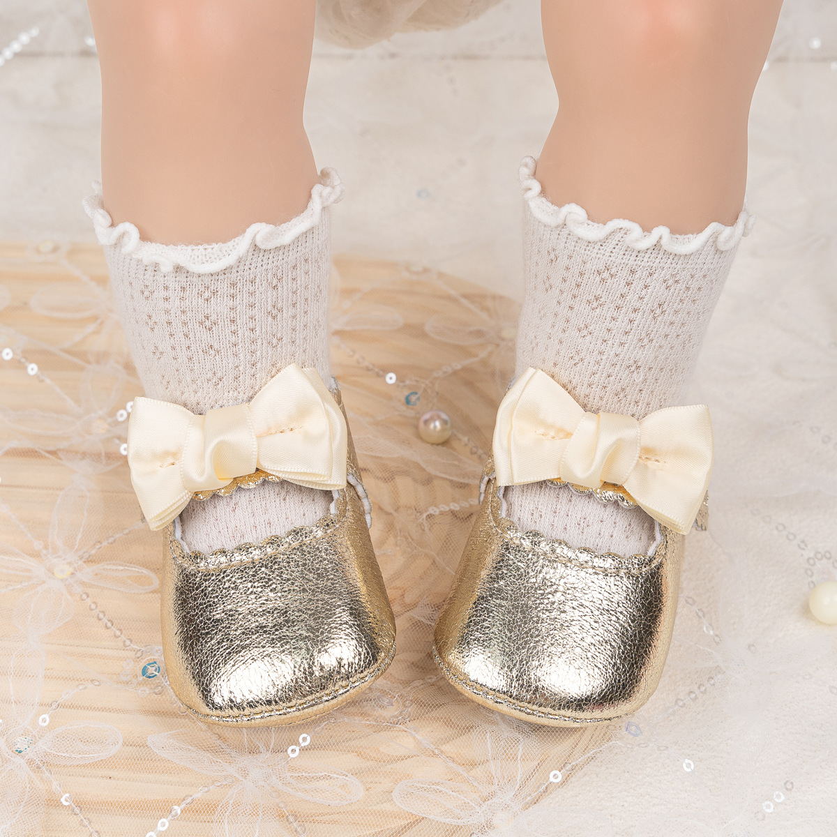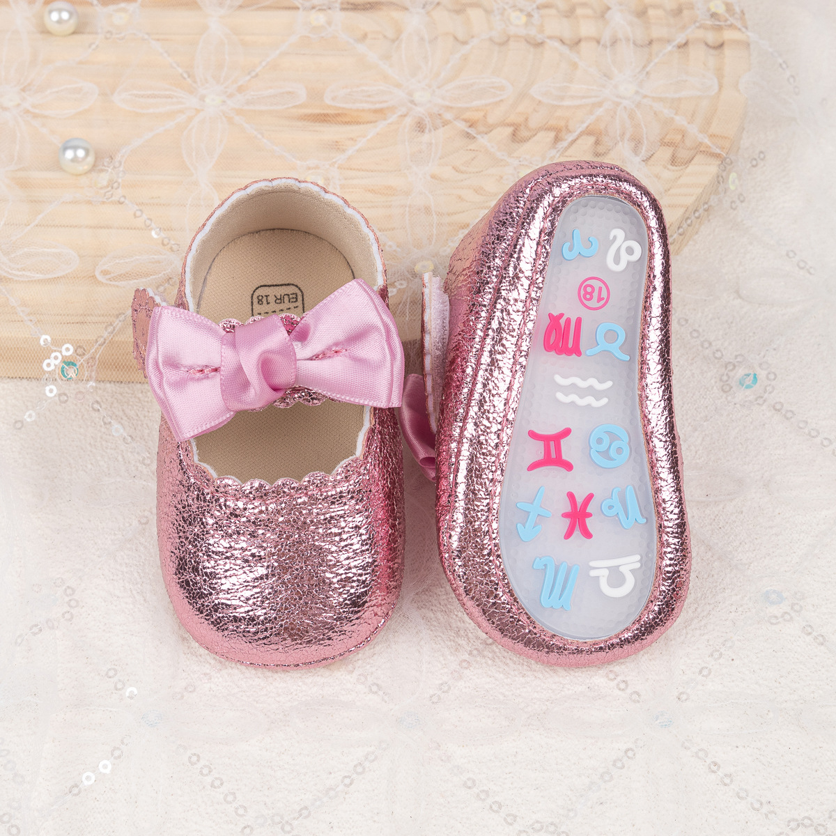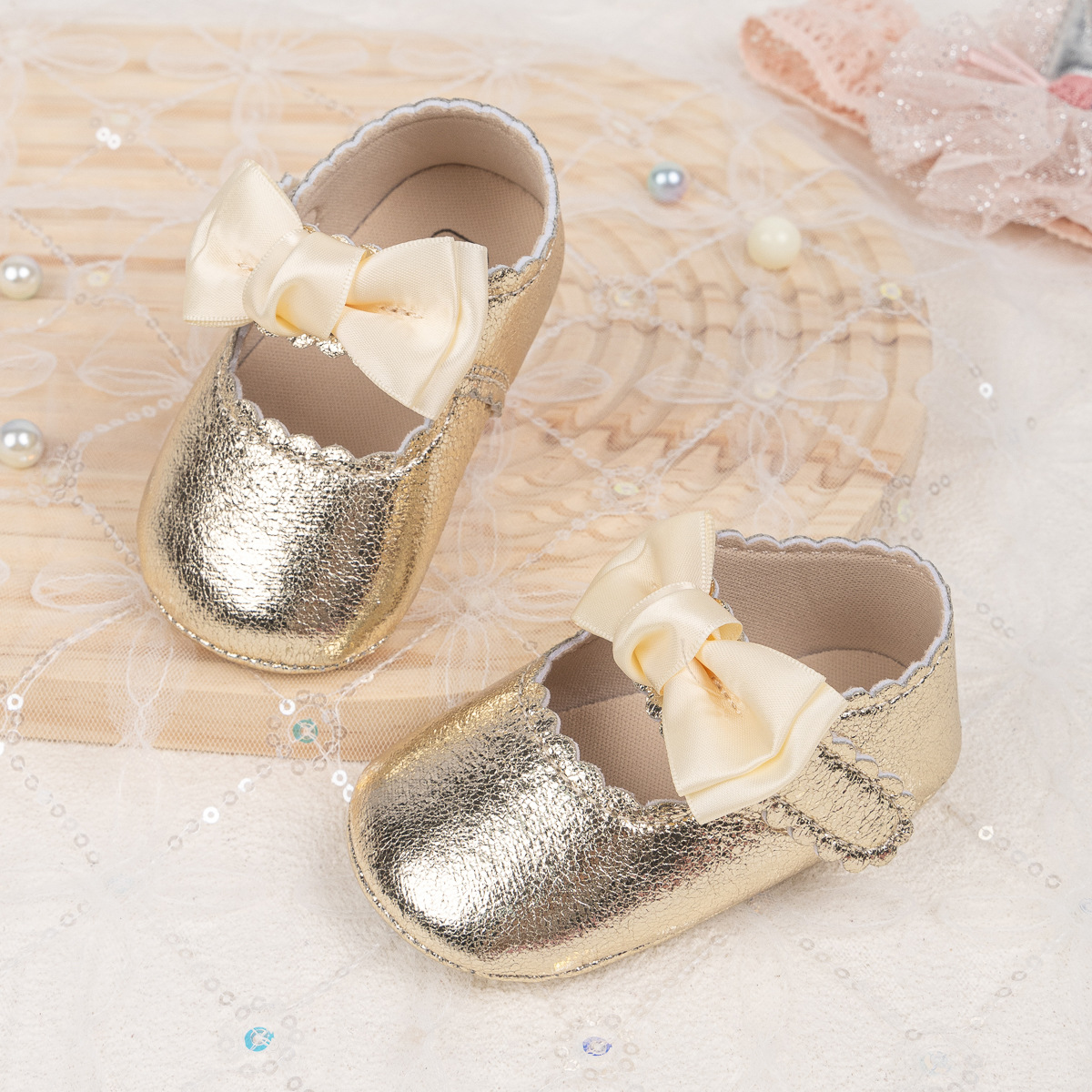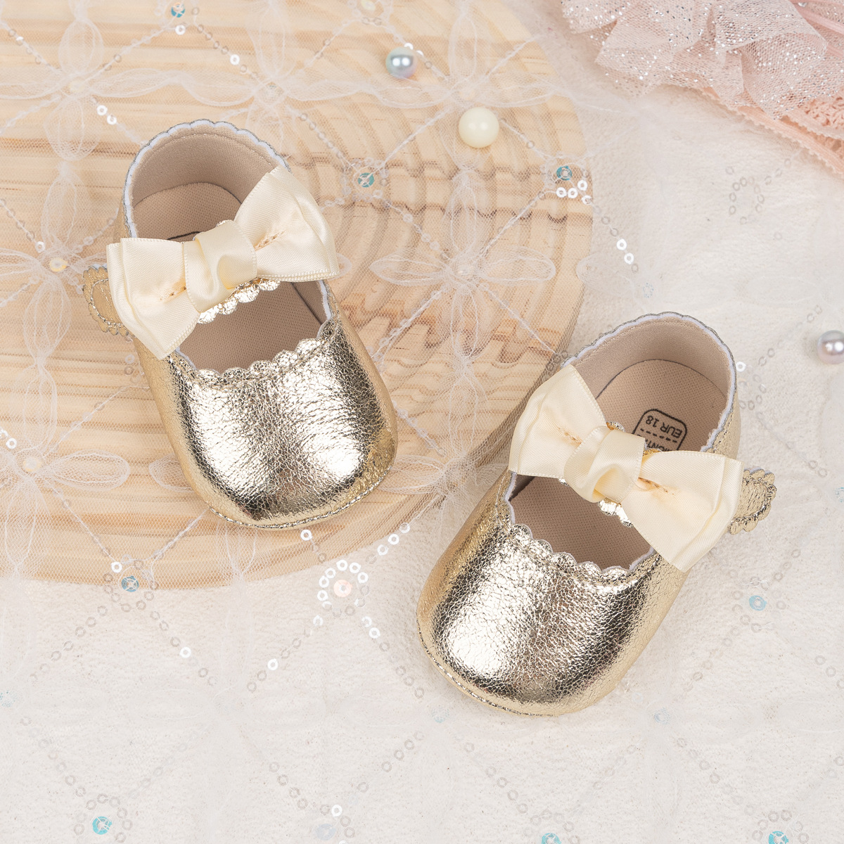 Foreign Trade Spring And Autumn New Baby Shoes Princess Shoes Bow Velcro Non-Slip Rubber Sole Toddler Shoes Baby Shoes